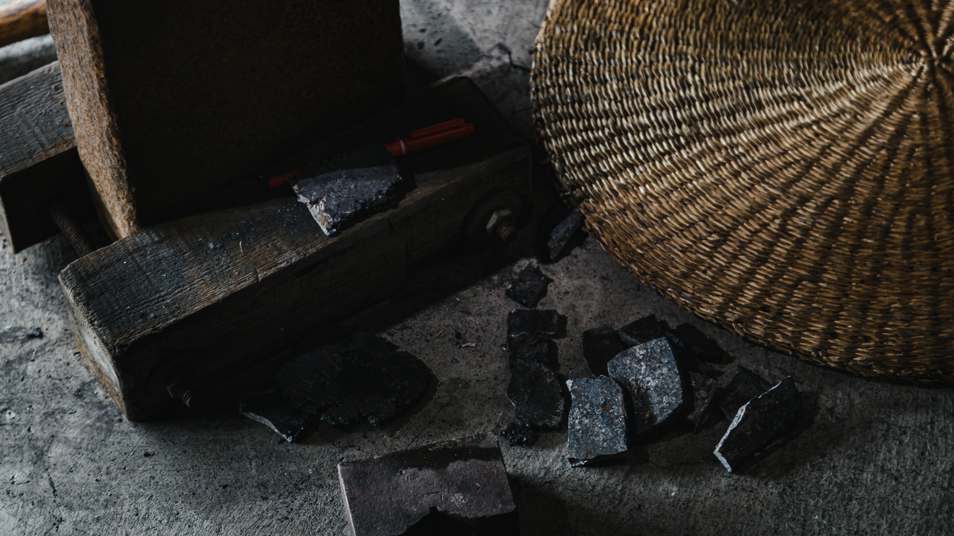 Tamahagane is a rare steel produced through the tatara smelting method—a traditional iron-making technique preserved in Japan for over a thousand years. Today, production continues only at Nittōhō Tatara in Okuizumo, Shimane Prefecture. Iron sand and charcoal are continuously fed into the furnace for three days and nights to create this prized steel, known for its toughness and purity. It is an essential material for Japanese swords, praised as ‘unbreakable, unbending, and razor-sharp.’